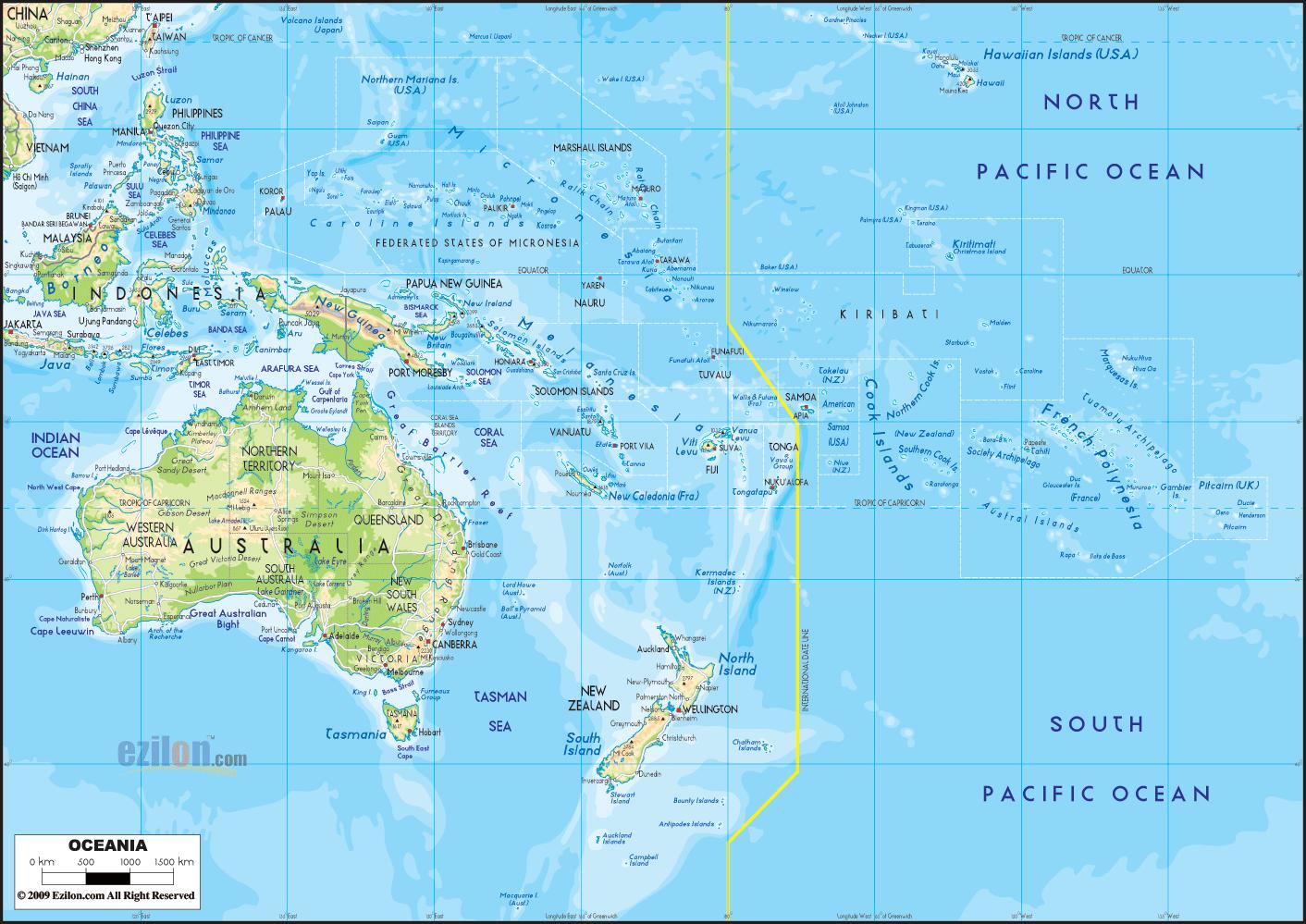 Australia i Oceania mapie. Mapa Australii Oceanii (Australia i Nowa Zelandia - Oceania) do druku. Mapa Australii Oceanii (Australia i Nowa Zelandia - Oceania) pobierz.